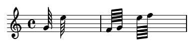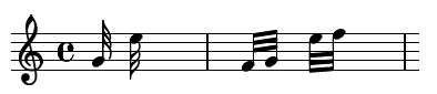 - Lorsque plusieurs quadruples croches se succèdent, on les attache ensembles avec une quadruple barre (quatre barres).