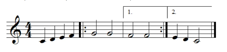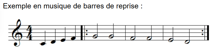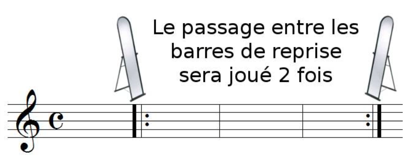 Les barres de reprises permettent de répéter un passage, il faut concevoir les barres de reprises comme des miroirs :